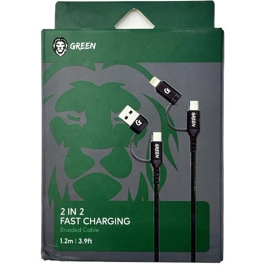 کابل شارژ سریع 2 در 2 گرین مدل Green Braided 2 in 2 Fast Charging Cable 1.2M۴۳۵٬۰۰۰ 35%
