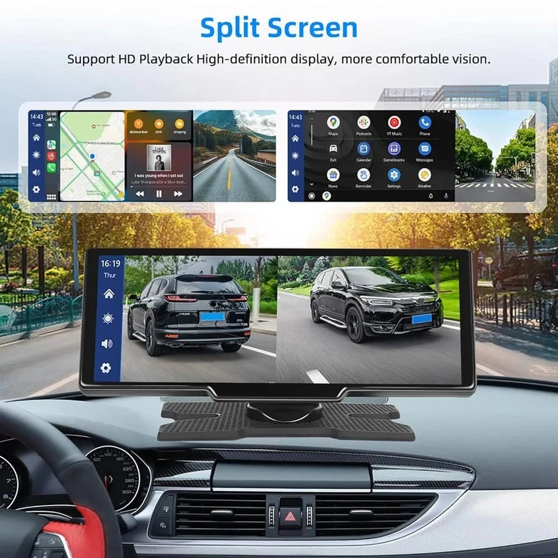 این دستگاه یک انتخاب حرفهای برای رانندگانی است که به دنبال ترکیب امنیت، راحتی و امکانات مدرن در خودرو هستند. مانیتور ۱۰.۳ اینچی لمسی با کیفیت تصویر Full HD، قابلیت اتصال به گوشیهای اندروید و آیفون را دارد و میتواند اپلیکیشنهایی مثل نقشه، موزیک، تماس، پیامها و پادکستها را روی صفحه نمایش دهد.