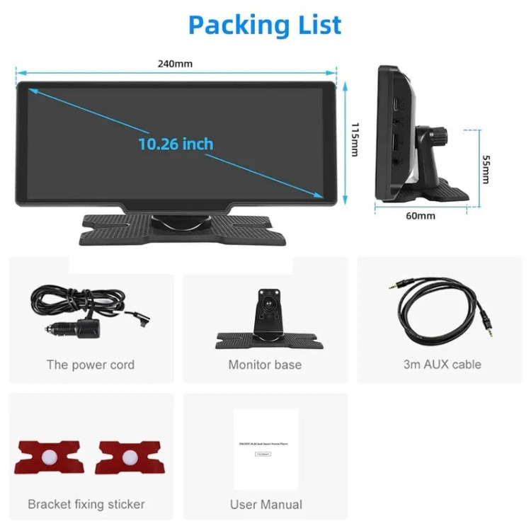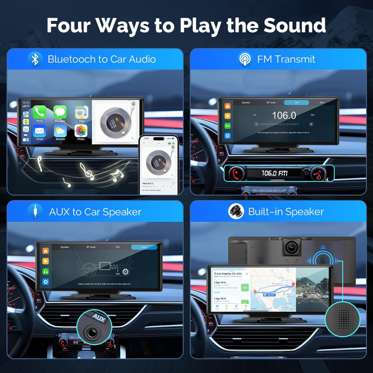 این صفحه پخش چند رسانه ای خودرو از Carplay بی سیم و Android Auto از طریق اتصال بلوتوث پشتیبانی می کند.می توانید مستقیماً از صفحه پخش بی سیم ماشین خود به برنامه ها، نقشه ها، تماس ها، AUX، FM، بلندگوها و بلوتوث دسترسی داشته باشید. صفحه نمایش 10.26 inch و لمسی با کیفیت فول اچ دی 1080Pکیفیت بسیار عالی را به ارمغان می اورد.کنترل صدا از طریق Siri/Google Assistant دسترسی به موسیقی، GPS و برقراری تماس، این نمایشگر خودکار اندروید تجربه رانندگی ایمن تر و راحت تری را برای شما فراهم می کند. ا اتصال تلفن هوشمند خود به صفحه قابل حمل کارپلی، صفحه نمایش ماشین Carplay موقعیت مکانی دقیق و ناوبری GPS را بدون تأخیر ارائه میکند. از Google Maps برای ارائه توصیههای مسیر در زمان واقعی برای ازدحام ترافیک و تغییر خطوط استفاده کنید. دسترسی فوری به آخرین اطلاعات ناوبری داشته باشید، بدون دردسر و بدون بهروزرسانی مکرر، مقصدها را جستجو کنید.