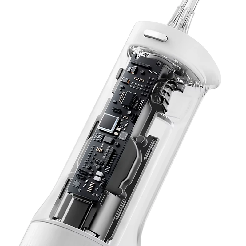 دهانشویه برقی Xiaomi از یک موتور قوی استفاده میکند که جتهای آب پالسی با فشار 140PSI و فرکانس 1400 بار در دقیقه تولید میکند. این جتها از نوکهای 0.6 میلیمتری عبور کرده و به فضای بین دندانها و لثهها نفوذ میکنند. این فناوری به شما کمک میکند تا پلاک و باقیماندههای غذا را به راحتی پاک کنید، بدون اینکه به لثهها آسیب برسد.