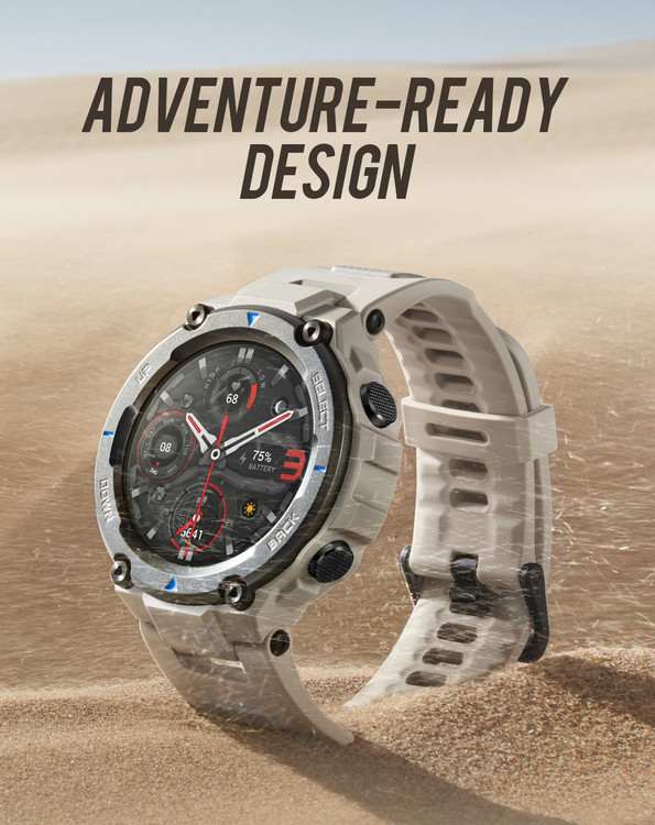 اگر اهل ورزش کردن هستید و به سلامت خودتان نیز اهمیت می دهید، قطعاً نیاز به وسیله ای دارید که دیتای مربوط به فعالیت های بدنی شما را ارزیابی نماید و همچنین، بر معیارهای مهم سلامتی مانند ضربان قلب، سطح اشباع اکسیژن خون و ... نظارت داشته باشد. ساعت هوشمند Amazfit T-Rex Pro با بدنه ای مقاوم و سرسخت، شما را در همه شرایط آب و هوایی و در برف و بوران و کویر سوزان همراهی نموده و ارزیابی کاملی از وضعیت سلامت شما به عمل می آورد. برخی از قابلیت های این ساعت هوشمند عبارتند از: