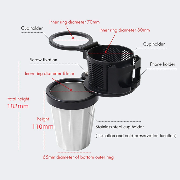 وسیلهای کاربردی و مفید برای همه ماشینها. این بهترین توصیف برای نگهدارنده لیوان و موبایل ۳ در ۱ است. چون با کمترین حجم بیشترین کارایی دارد. همزمان ۳ بطری یا لیوان نوشیدنی را نگه میدارد. جایی برای نگهداری تلفن همراه شما دارد و همچنین ظرف پایینی این نگهدارنده قابلیت حفظ دمای نوشیدنی شما را دارد. یعنی لیوان قهوه شما سرد یا بطری آب شما گرم نمیشود.