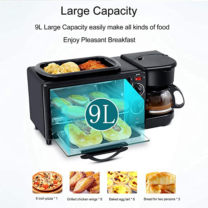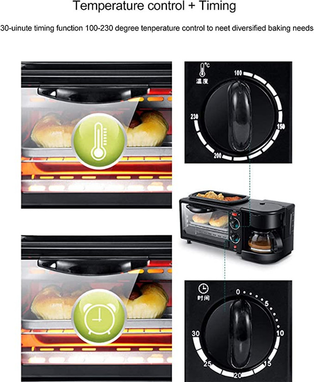 صفحه گریل روی دستگاه برای درست کردن نیمرو، املت، پنکیک، سوسیس و بیکن مناسب است. ابعاد آن برای درست کردن صبحانه برای چهار نفر مناسب است. بخش اجاق توستر هم که با یک در شیشه محکم بسته میشود، برای توست و آماده ۴ تکه نان و یک پیتزای کوچک و ... مناسب است. فضای این بخش ۹ لیتر است و با آن خیلی از خوشمزههای صبحانه را میتوانید درست کنید.