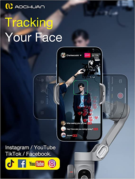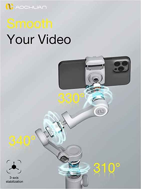 گیمبال دستی سهمحوره AOCHUAN مدل Smart X Pro، مجهز به پنل OLED است که مجهز به حالتهای عکاسی، عمر باتری و بلوتوث است و وضعیت این موارد را نمایش میدهد. کار کردن با این گیمبال بسیار آسان است و افراد مبتدی هم به راحتی میتوانند به کمک این دستگاه مثل حرفهایها کار کنند و لذت ببرند. چون استفاده از ابزارهایی که برای این دستگاه طراحی شده است، بهگونهای است که نیازی به تجربه زیاد ندارد. به عنوان مثال برای عکاسی بهتر، حلقه نوری که اطراف گیره تلفن همراه روی دستگاه تعبیه شدهاست مجهز به روشنایی قابل تنظیم سهبخشی است که عکسهایی که در شب میگیرید با کیفیت بسیار بالاست.