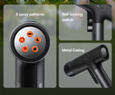 تفنگ آب پاش این محصول، فلزی است ولی به سادگی زنگ نمی زند. سری تفنگ آب پاش، حالت های مختلف پاشیدن آب ( مانند دوش حمام) دارد که می تواند به 5 حالت مختلف آب را خارج کند.