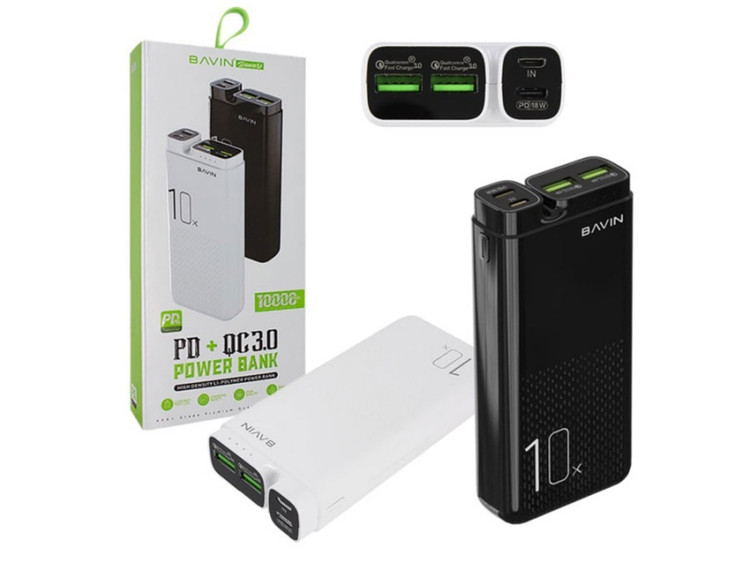 باتری لیتیوم پلیمری شارژر همراه Bavin 10000 Pc085 بسیار بادوام است و تا مدتها کار میدهد و در صورت عدم استفاده، شارژ آن از بین نمیرود و توان خروجی آن 18 وات است. پاوربانک فست شارژ Bavin مدل PC085 10000mAh قابلیت فست شارژ با استاندارد QC3.0 و PD دارد و خیلی سریع گوشی هایی که از این قابلیت پشتیبانی می کنند را شارژ میکند.